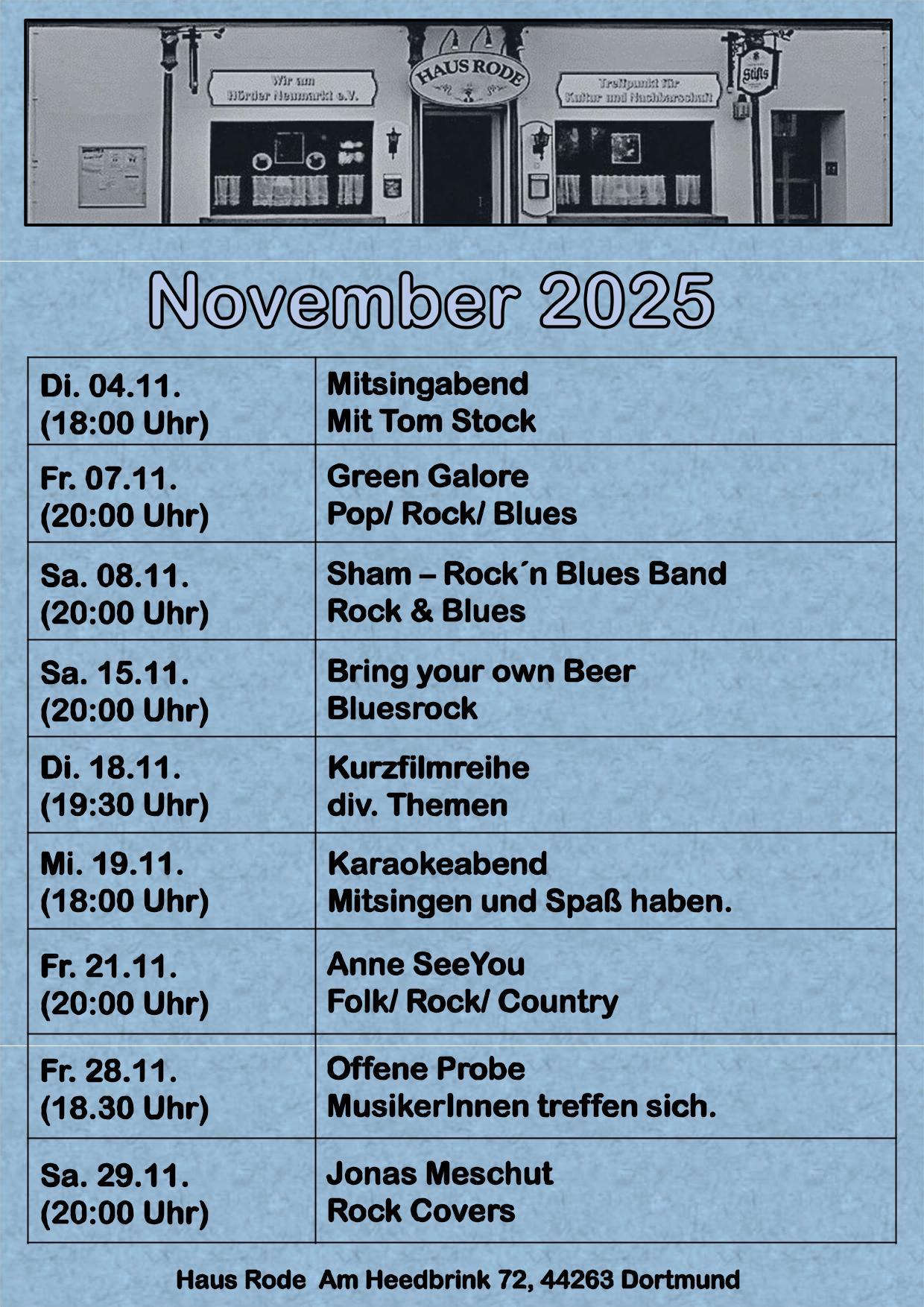 Hobbymusiker*innen treffen sich hier, im Haus Rode. Wenn Du Spaß am gemeinsamen Musizieren hast, mit anderen Musikern Jammen und/oder Dich ausprobieren möchtest, bist Du herzlich eingeladen.