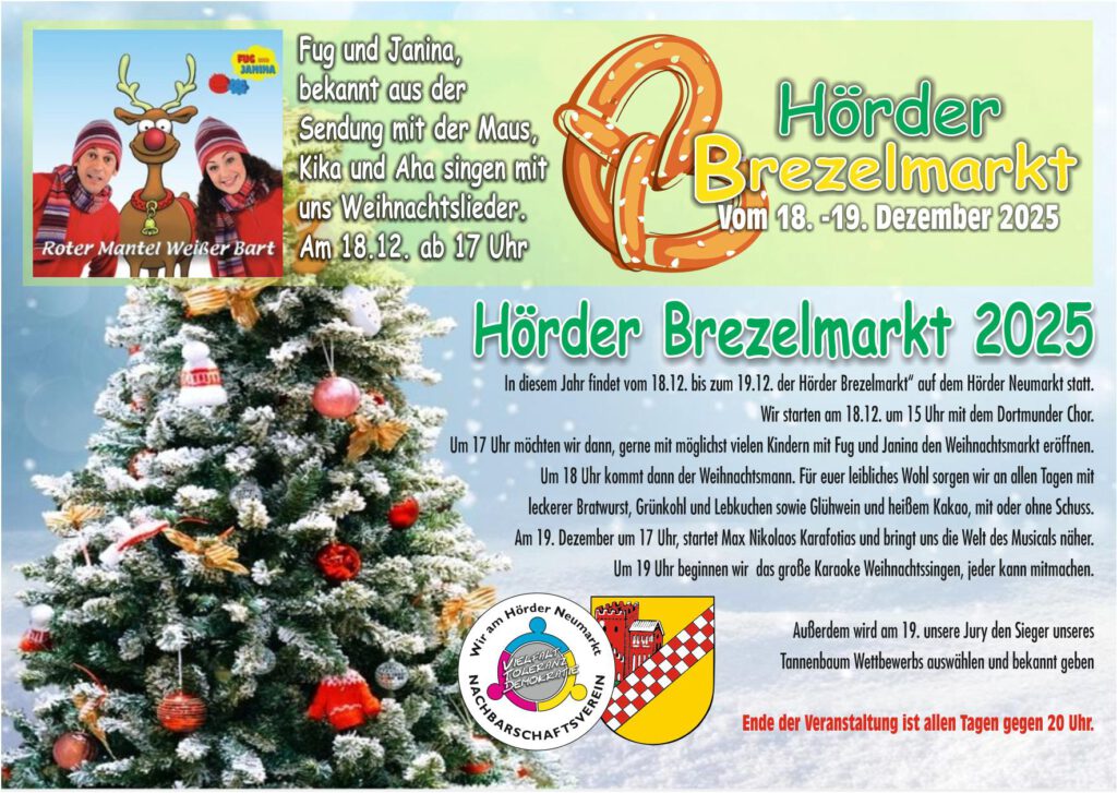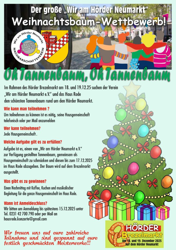 Im Rahmen des Brezelmarktes gibt es einen Weihnachtsbaum-Wettbewerb. Jede Hausgemeinschaft kann mitmachen. Der Sieger wird am 19.12.2025 auf dem Brezelmarkt bekannt gegeben.