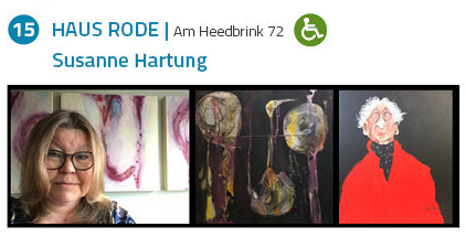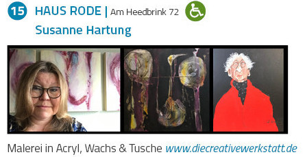 Ausstellende Künstlerin ist Susanne Hartung mit Malerei in Acryl, Wachs & Tusche.