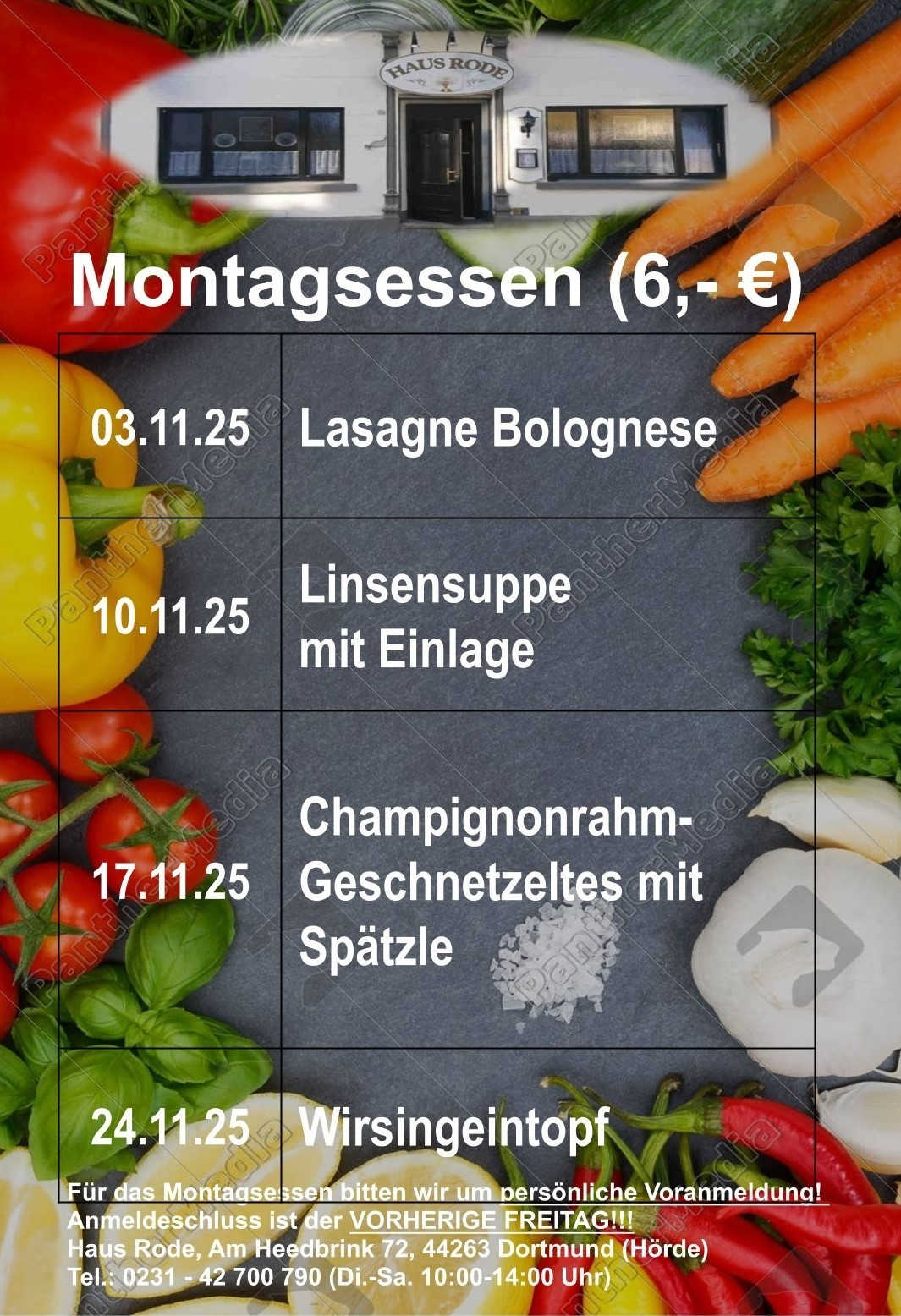 Für das Montagsessen bitten wir um persönliche Voranmeldung!