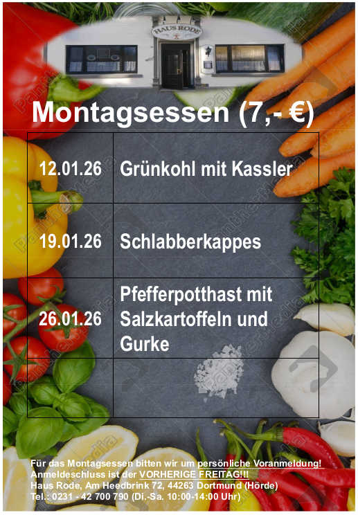 Für das Montagsessen bitten wir um persönliche Voranmeldung!